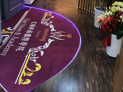 採用水晶絨抗敏材質,車縫收邊不脫線,耐用貼合地面。商標圖文內容以印染加工,可全彩印染精緻印刷工藝,飽和度高,顯色亮麗。清潔/好整理,可用洗衣機洗,清潔後可熨燙恢復平整。價格根據製作尺寸計價,請提供尺寸洽詢。